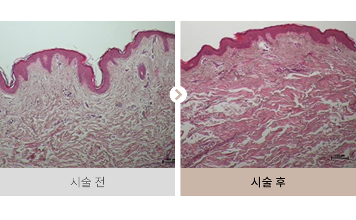 시술 후 즉각적인 리프팅 및 타이트닝 효과를 볼 수 있으며, 콜라겐 리모델링에 의해 시간이 지나면서 효과가 증대됩니다.
